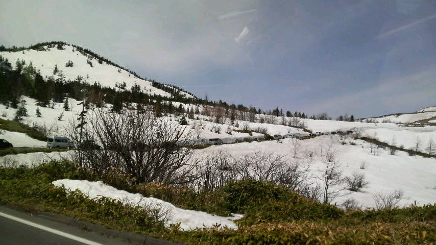 草津~志賀高原ルートの開通当日の報道では、「雪の壁の高さは最高で8メートル」なんて言っていたけど、今日見た感じはそれほどでもなく(^^ゞここ数日の好天&高気温の影響をモロに受けた感じです。(本日の山頂付近の気温20度)でも、まだ3~4メートルぐらいあった場所もありました。